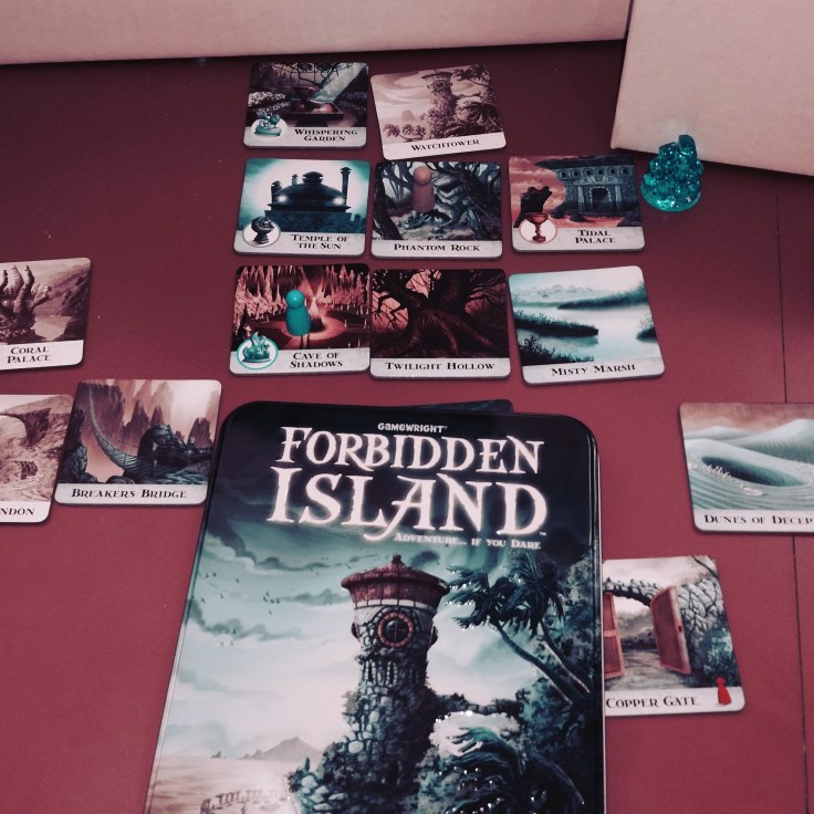 Welcome to my 1st gaming post! I’m thinking of regularly doing these posts on Saturday’s (because gaming is best on a weekend!) But, I couldn’t wait to get my first post out to “Test The Waters!” …..ha ha ha! Ok. You’ll see why that’s funny when I explain my first game. ..Maybe. Today I’m going to talk about a CO-OPERATIVE tabletop card/tile strategy GAME called ‘Forbidden Island’!